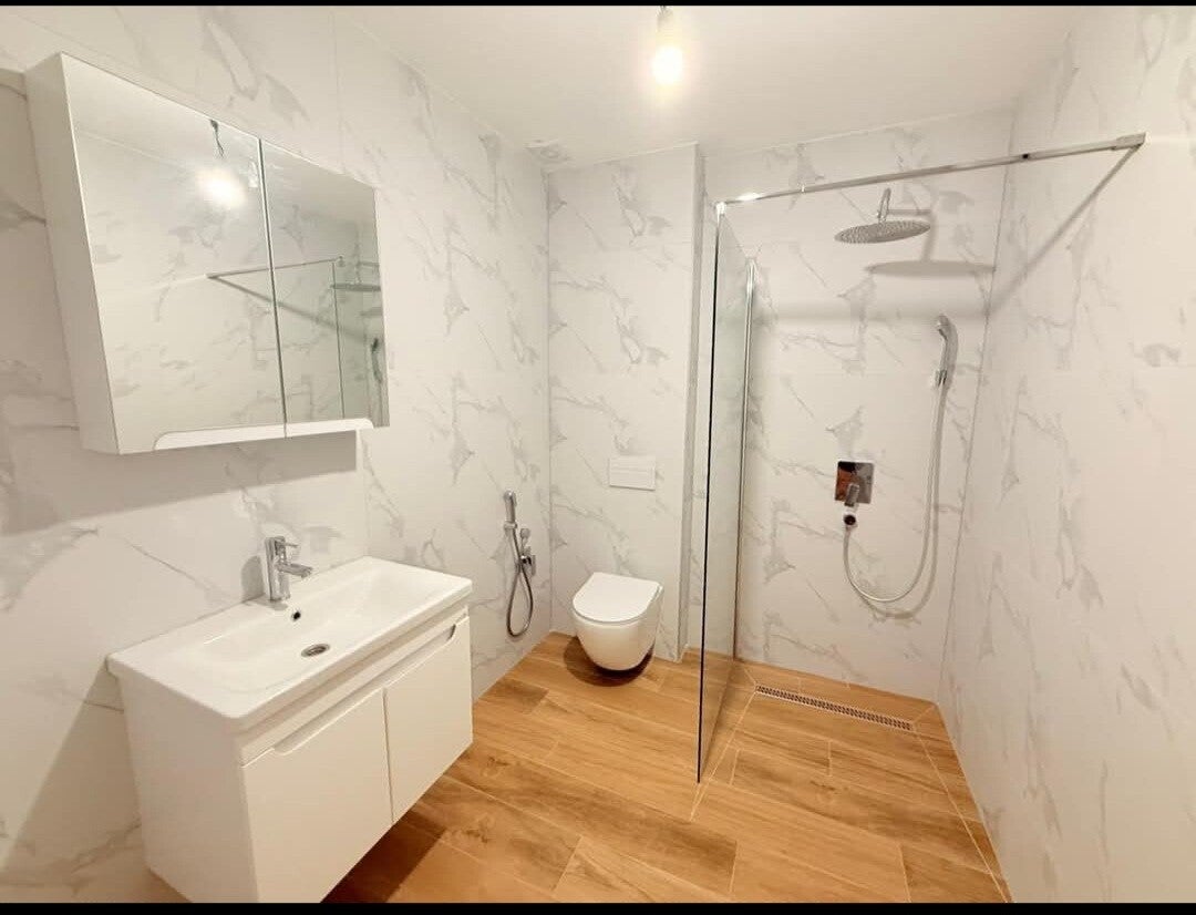 Diese traumhafte Wohnung in Susanj Ilinjo bietet Ihnen eine großzügige Wohnfläche von ca. 120 m². Sie verfügt über zwei Schlafzimmer, die mit Fußbodenheizung ausgestattet sind, sowie ein modernes Badezimmer und ein einladendes Wohnzimmer. Eine große Terrasse lädt zum Entspannen im Freien ein. Der Innenausbau erfolgt derzeit noch, wobei neue Fliesen verlegt werden. Die Wohnung ist so konzipiert, dass sie im Sommer kühl und im Winter warm bleibt, was ein angenehmes Wohnklima gewährleistet. Das Meer ist nur fünf Minuten mit dem Auto entfernt, ebenso wie alle notwendigen Einrichtungen des täglichen Bedarfs.
